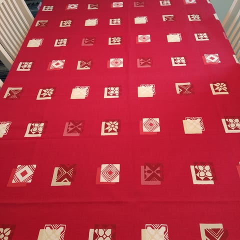 Käyttätön (liian pieni) 130 x 160 cm. Puuvillaa.