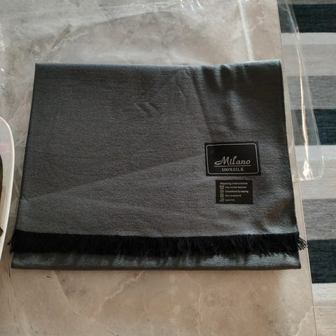Construe-merkkinen kaulaliina 95 % puuvillaa ja 5 % kasmirvillaa. Kauniin sininen. Uusi. Liinan mitat 190 x 28 cm.