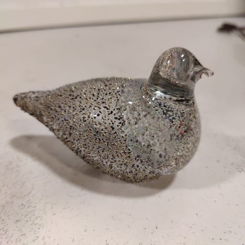 Kaunis sininen lintu, art lasi, sydämen muotoinen kuvio. Noin 13cm korkea ja 18cm pitkä.