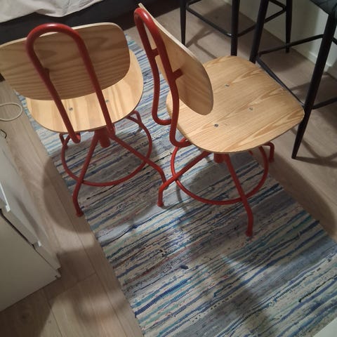 Ikea Kullaberg tuoli, musta. Pyörivä istuin, istuimen korkeutta voi säätää. 15€ kpl, saatavilla 2 kpl.