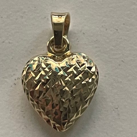 Kultainen (14k, 585) pieni sydänriipus. Riipuksen halkaisija 7.5mm, kokonaiskorkeus lenkin kanssa 11mm.