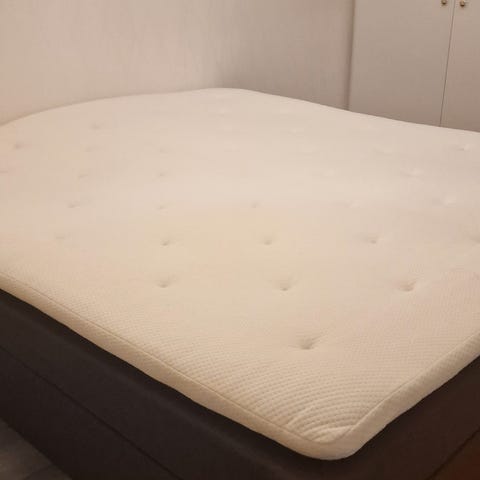 Vierassängyksi vuosi sitten hankittu jenkkisänky, nukuttu max 10 kertaa aina patjansuojan kanssa. Kissa näyttänyt pariin kohtaan kynsiä, näkyy kuvissa. Muuten virheetön. Runko Espevär, patja Vadsö, petari Nopakte ja Sotnätfjäril-patjansuoja. Uutena yht. 359€.