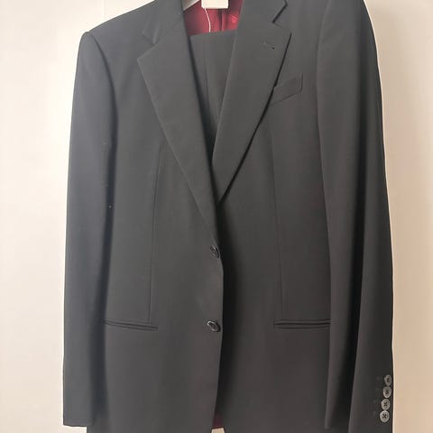 Laadukas villasta ja silkistä tehty Armani Collezioni custom-puku ”Su Misura”, joka tehty hyvin varmasti vanhalle yritysjohtajalle Matti Alahuhdalle. Kyseinen yksilö maksanut tuhansia uutena.