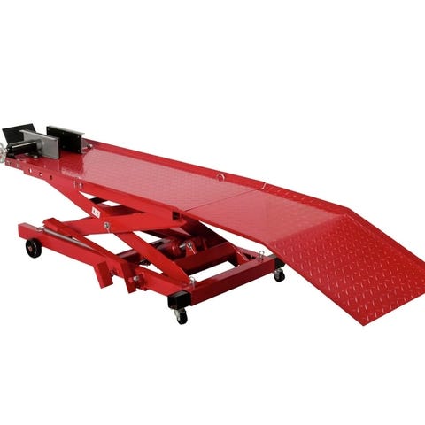 Moottoripyörän huoltotaso mekaaninen nosto.