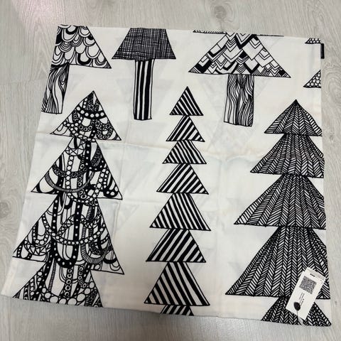 Kahdet Marimekon kuusikossa koristetyynynpäälliset yhdessä myyntiin.