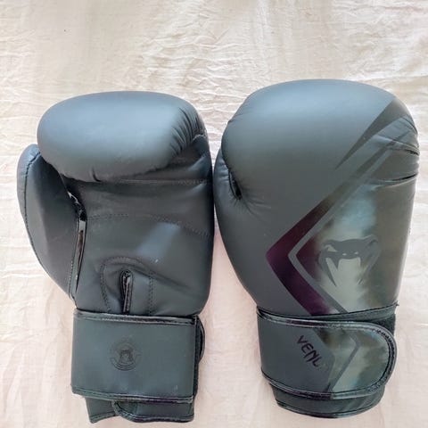 Kuvanmukaiset hanskat, M koko. Käytetty noin vuoden, mutta hyvässä kunnossa. Mukaan saa nyrkkeilyhanskat, missä nauhat hieman löystyneet mutta pysyy kyllä kädessä