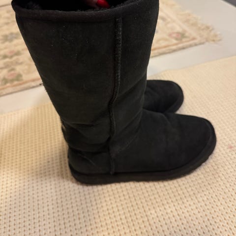 UGG talvikengät, koko 38, musta väri. Kengät on valmistettu lämpimästä materiaalista, tarkoitettu käytettäväksi kylmissä olosuhteissa.