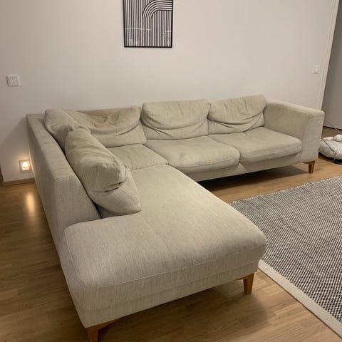 Sohvan saa kahteen osaan kuljetusta varten divaanipalan kohdalta.