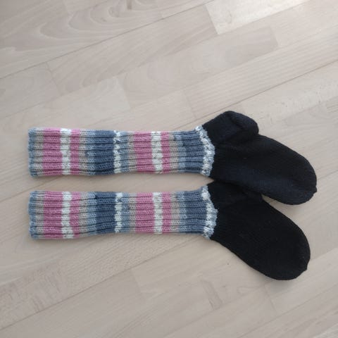 Sukat kudottu käsin 7 veljestä -langasta. Vahvistettu kantapää. Koko 38-39.