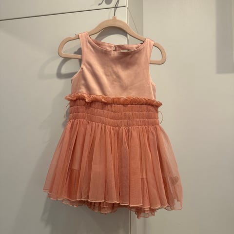 Vain muutaman kerran käytetty juhlamekko koossa 86. Eläimetön talous.