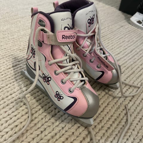 Reebok lasten luistimet koko 30, värit pinkki ja valkoinen. Mukana kantolaukku, joka on läpinäkyvää materiaalia ja pinkillä kantohihnalla varustettu. Pientä pintanaarmua, mutta muuten kuin uudet.