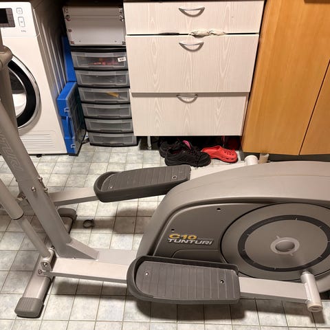 Stepper-harjoituslaite, jossa mustat askelmat ja digitaalinen näyttö. Laite soveltuu kotikäyttöön askelten ja harjoituksen seuraamiseen. Rungon väri harmaa, askelmat mustat.