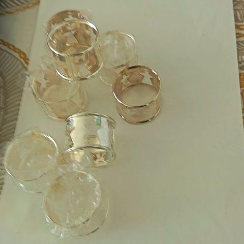 Keraamiset, käsin tehdyt lautasliinarenkaat / servettirenkaat, 6 kpl. käyttämättömät. Hinta yhteensä.