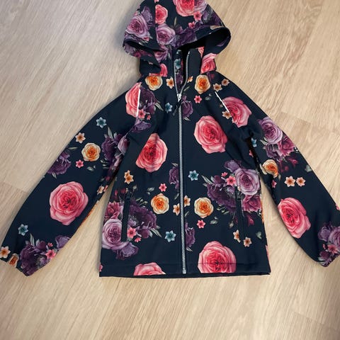 Name itin tummanvihreä anorakkimallinen softshell takki. Kokolapun mukaan kokoa 140, mutta vaikka sivulla on vetoketju helpottamassa pään yli vetämistä, ei nyt 140 kokoa käyttävältä sirolta pojalta mennyt enää pään yli. Käytetty n. 128-134 koossa.