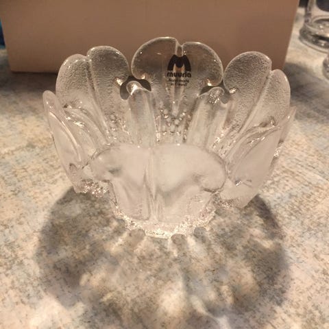 Käyttämätön. Yksi valmistusvaiheessa tullut ilmakupla, josta kuva.