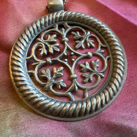 Tämä 925 hopeinen koru on seissyt kaapissa yli kymmenen vuotta ja on poistunut tuotannosta kauan sitten. Nyt etsii uutta kotia. Korua ei ole koskaan käytetty. Vuosien kuluessa se on aavistuksen tummunut mutta on helppo kiillottaa. Ostettu kultasepänliikkeestä.