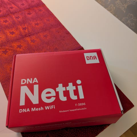 Pari vuotta vanha kaapelimodeemi jäi tarpeettomaksi kuituyhteyden myötä. Suojakalvo vielä irrottamatta, koska majaillut IT-kaapissa.