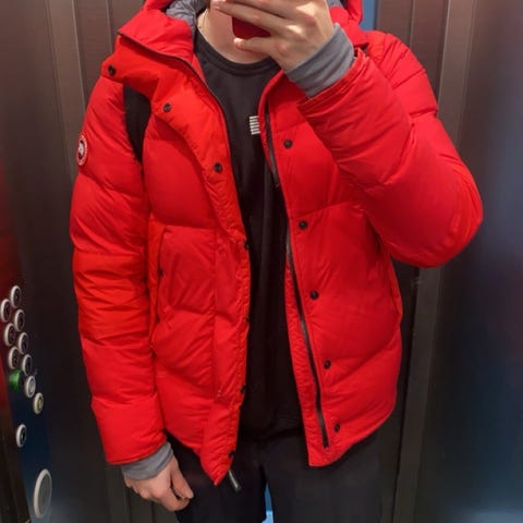 Canada Goose Takki punaisena, koossa M. Hyvässä kunnossa oleva vähän likaa hihoissa, mutta lähtee pesussa. Muuten takissa ei ole mitään vikoja tai jälkiä.
