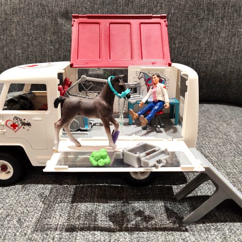Schleich eläinlääkärin auto, sekä tarvikkeita.