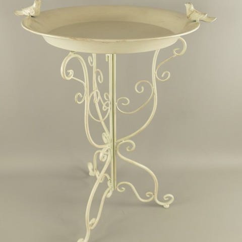 Kaunis koristeellinen lintuallas tai ruokintapaikka lehtimuodossa. Valmistettu valurautasta.