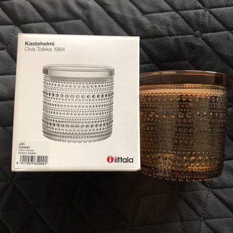 Iittalan kannellinen kastehelmipurkki. Korkeus 11 cm, halkaisija 11.5 cm