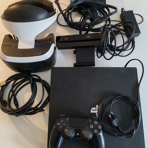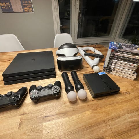 Sony PlayStation 4 pelikonsoli + VR-setti + ratti ja polkimet + SingStar mikrofonit + pelit 27kpl