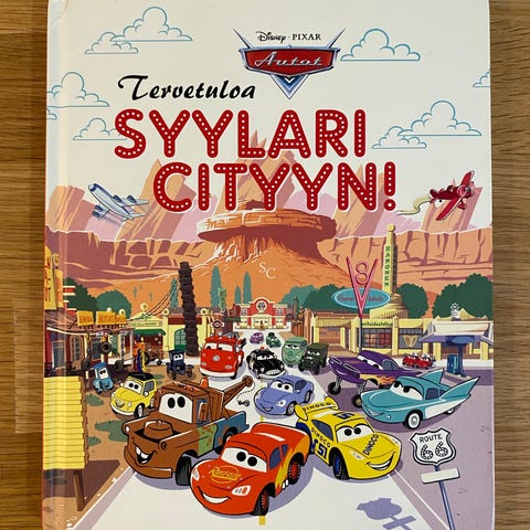 Disney Pixar Autot lastenkirja, jossa on suosittuja hahmoja elokuvasta Autot. Walt Disney Dumbo lastenkirja, joka kertoo Dumbo-nimisestä norsusta. Molemmat kirjat ovat lasten kuvakirjoja, joissa on värilliset kuvitukset.