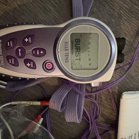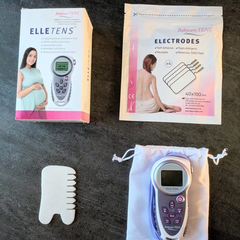 Elle tens laite synnytyskipujen hoitoon. Erinomainen lääkkeetön kivunlievitys. Tenslaitteesta löytyy monta tehotilaa sekä boost painike jota voi käyttää supistuksen aikana.