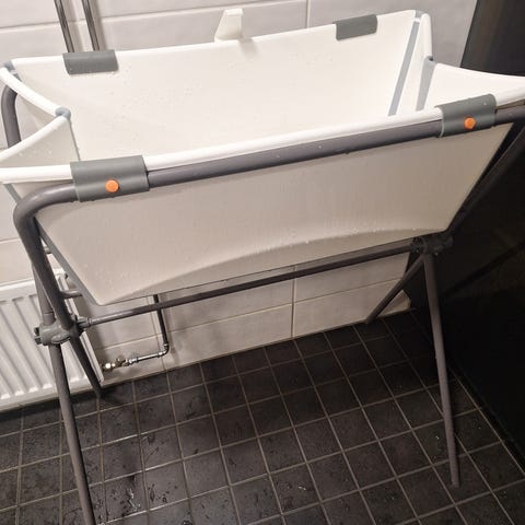 Kuvan mukainen Flexi Bath ammeen jalka. Jalat hyvässä kunnossa. Amme ei niinkään. Ammeen saa halutessaan kaupan päälle.