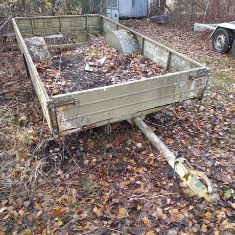 Peräkärryn runko ja akseli. Runkorakenne metallia.Renkaat ovat uretaanilla täytetty 34×7 jotka ovat käytössä olleet varmaan jo ennen sotia ja näkyvät kuvissa.Akseli jostain vehkeestä luoja ties mistä. Sopii rankojen ajoon tai aivan kuinka haluaa soveltaa!
