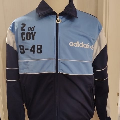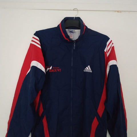 Suomen jalkapallomaajoukkueen takki vuodelta 1999. Itse takki oikein siistissä kunnossa, ei reikiä/tahroja tms. Selän printissä kulumaa ja jostain syystä vetoketju ei sulkeudu ihan kokonaan, toimii muuten kuitenkin täydellisesti. Koko miesten L.