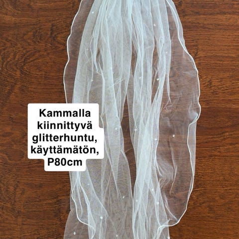 Myydään kerran käytetty valkoinen huntu, kunto kuin uusi. Pituus 70cm.