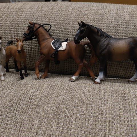• Tarvikkeita: satula, suitsia, riimu ja riimunvarsi, ruokinta-/juoma-ämpäri, heinäpaali, omenoita ym.