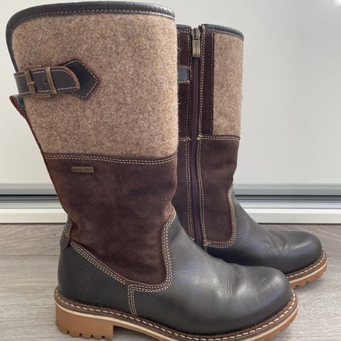 Tamaris Saappaat koko 37 ruskea. Saappaissa on korkea korko ja nyöritys. Materiaali näyttää olevan mokkaa tai vastaavaa. Saappaat soveltuvat käytettäväksi viileämmillä ilmoilla.