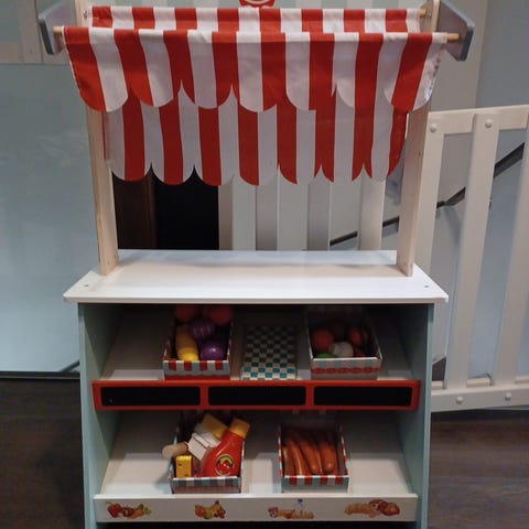 Puusta tehty tukeva ja ihana myyntikoju / kauppa / kioski / kahvila lapselle.