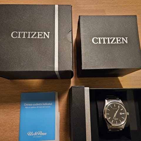 Lähes uutta vastaavassa kunnossa. Kevyt, kestävä, Titaania. Saa energiansa valosta normaalissa käytössä. On vain jäänyt käyttämättä älykellon tähden. Oma laatikko ja ohjekirja mukaan. Haku, tai postitus.