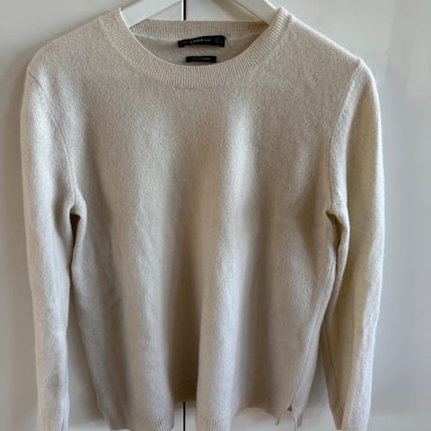 Zaran oversized-mallinen neule pehmeää kashmiria. Laatikkomainen väljä malli, hihoista istuvampi. Hieman materiaalille tyypillistä käyttönukkaa, mutta yleisilme erittäin siisti. Todellinen väri näkyy parhaiten viimeisissä kuvissa.