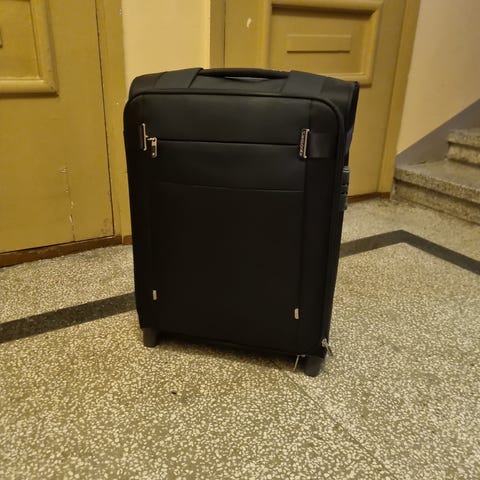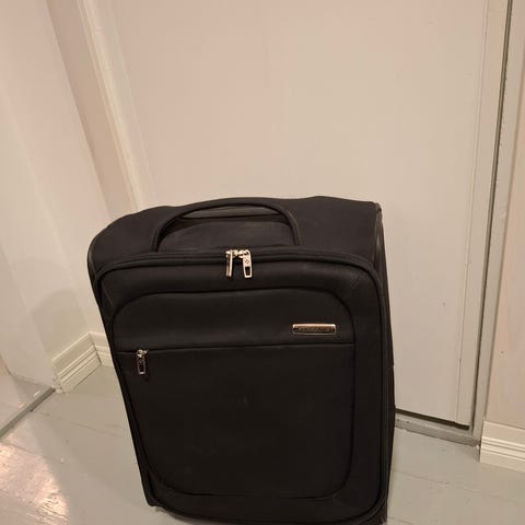 Kaksipyöräinen Samsoniten cabin size matkalaukku 40 x 20 x 55 cm. Tumman sininen. Siisti kunto, vähäisiä käytön jälkiä.