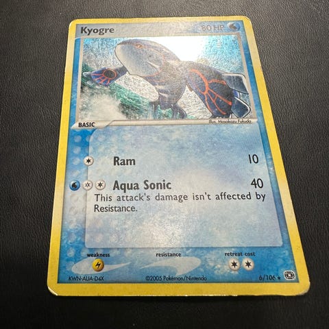 Kyogre Pokemon EX Emerald sarjasta (2005). Kortti on holo.