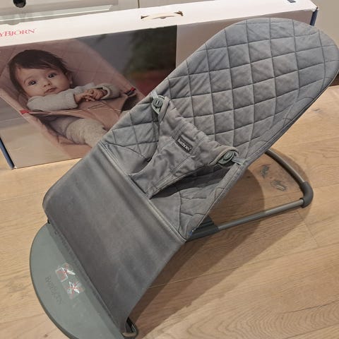 Harmaa/musta babybjörn sitteri. Hyväkuntoinen.
