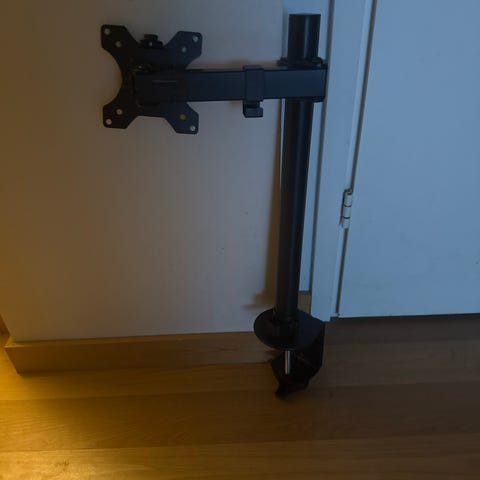 Teline kiinnitetään pöytään puristimella. Teline sopii 13-32 tuumaisille näytöille. VESA-kiinnitys (100x100, 75x75). Enimmäispaino 9kg/näyttö. Kokonaisuuden korkeutta voi säätää. Kaapelit voi viedä telineen läpi.