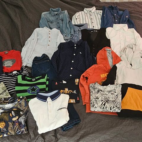 Kokoa 110 vastaava iso vaatepaketti ehjiä ja hyväkuntoisia vaatteita kuntoluokituksella uudenveroinen/käytön jälkeä/hyvä.