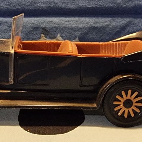 Isäni kätköistä löytynyt Volvo Jacob -muoviauto, josta valitettavasti toinen etuvalo on (tallella, mutta) rikki/irronnut. Eturenkaiden metallinen kiinnitys ruosteessa, kuten kuvasta näkyy.