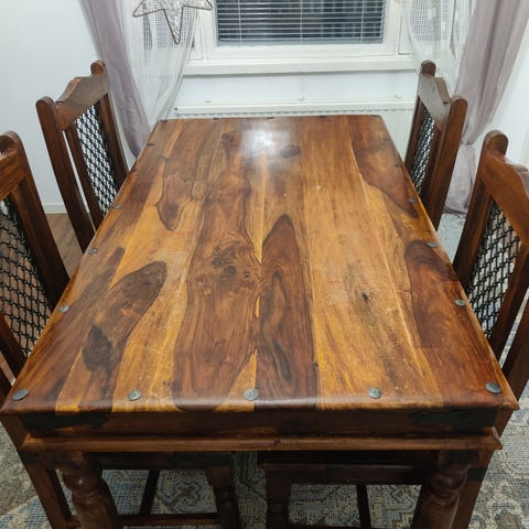 Käytön jälkiä mutta siisti tukeva pöytä. Nopein noutaja saa.