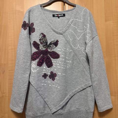 Desigual Paita naisille, koko XXL. Valmistettu puuvillasta, väriltään valkoinen. Pitkähihainen malli, jossa koristeelliset yksityiskohdat edessä.