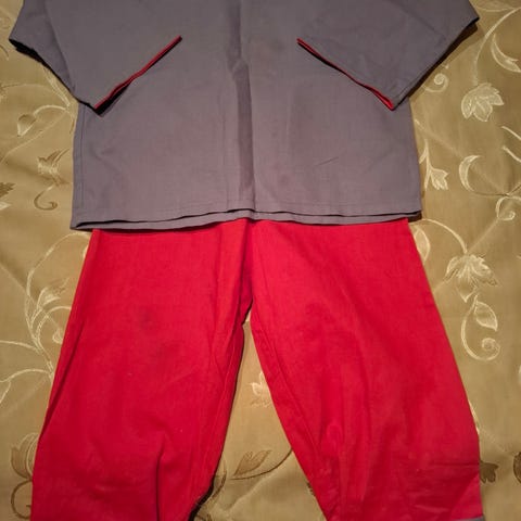 Kuvan mukainen puku 100-110cm ja kolme tonttulakkia,puku kuin uusi,lakkeja käytetty.