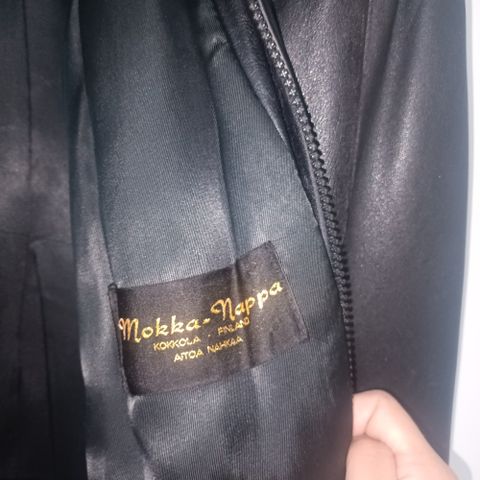 Hyväkuntoinen naisten nahkatakki karvakauluksella.