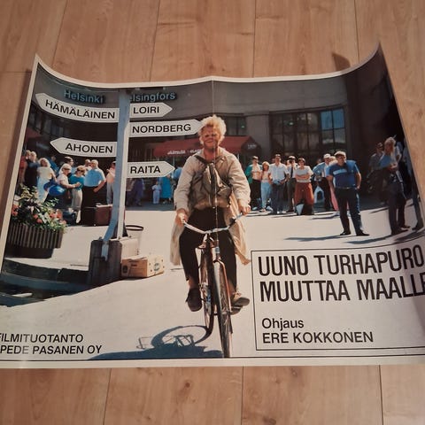 Uunon huikeat poikamiesvuodet maaseudulla on alkuperäinen juliste vuodelta 1990. Tupla-Uuno, muuttaa maalle ja kaksois-agentti ovat uudistuotantoa. Myydään ilman kehyksiä. Nouto tai postitus putkessa 10,90€.