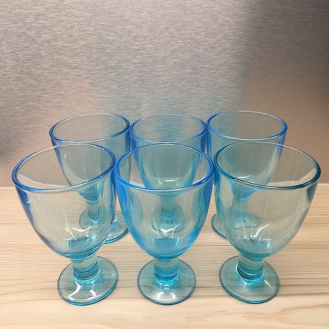 Myydään Kerttu Nurmisen vaaleansiniset Verna lasit 8 kpl. Käyttämättömiä ja ehjiä. 5 euroa kappale. Korkeus 13.5 cm.