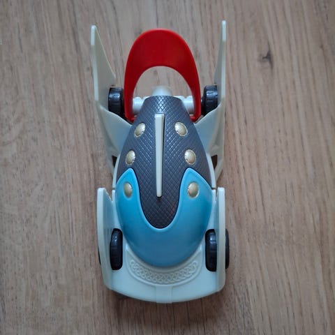 Marvel Captain America lasten leluauto, joka on suunniteltu lapsille leikkikäyttöön. Auto on väriltään sinivalkoinen punaisilla yksityiskohdilla ja siinä on isot mustat renkaat, jotka sopivat erilaisille alustoille.